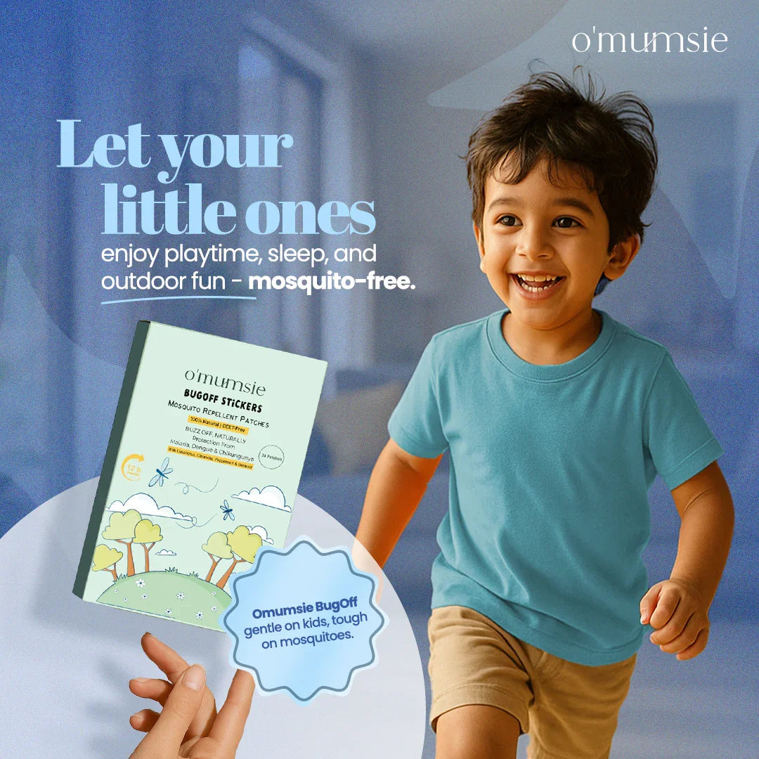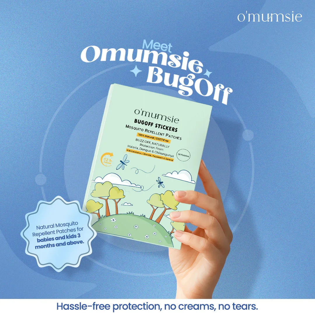 Protect your little ones with Omumsie BugOff™ Mosquito Repellent Patches, crafted with 10% Geraniol oil, Eucalyptus Globulus, and pure natural plant ingredients. These DEET-free patches combine the wisdom of nature with refreshing Thai-inspired aromas—gentle on kids, but tough on mosquitoes.